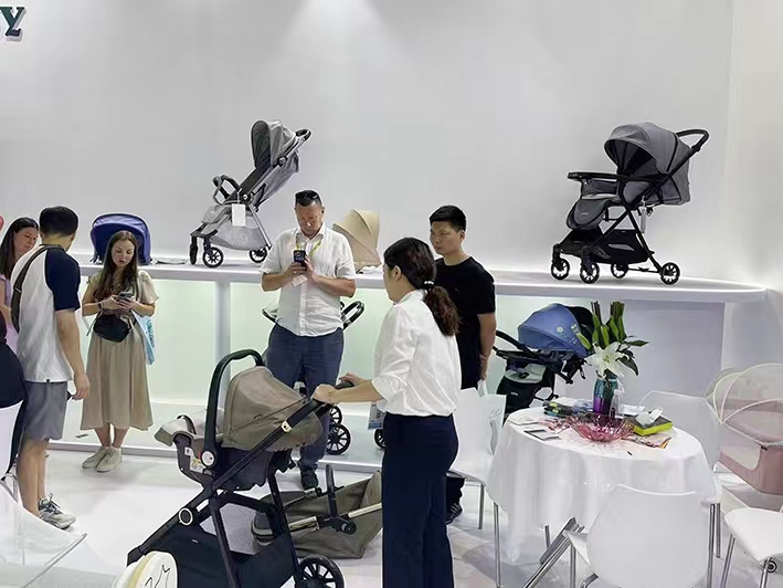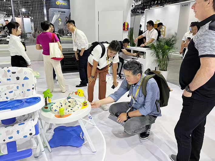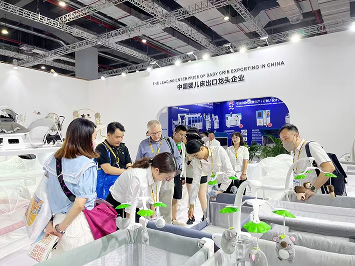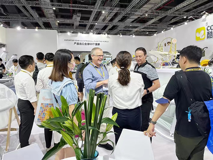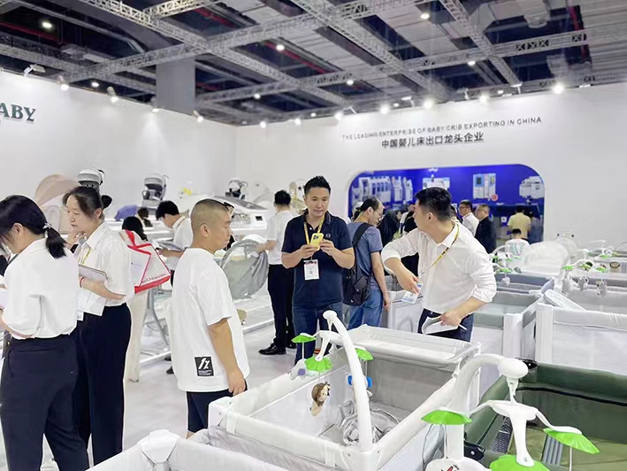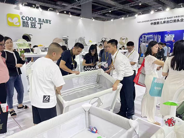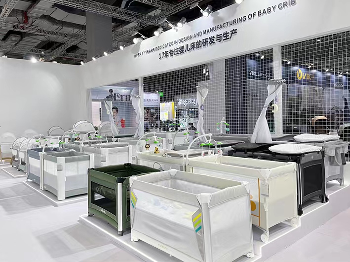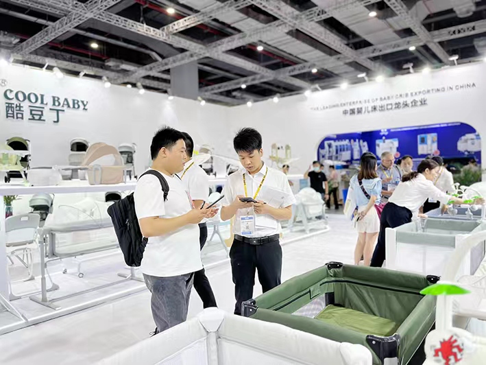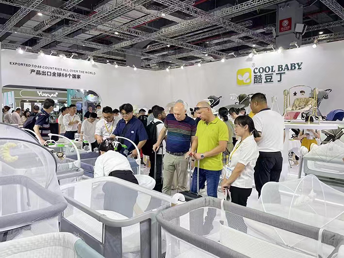 在CBME展會上,酷豆丁攜擁有獨家發明專利的一鍵開合式嬰兒床公開亮相,吸引了眾多采購商駐足參觀、溝通交流。