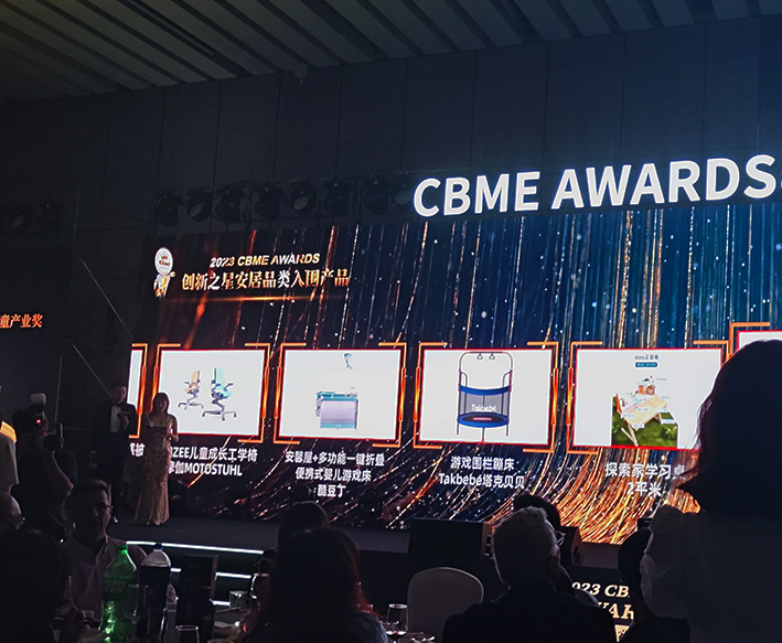 其中酷豆丁多功能一鍵折疊便攜式嬰兒游戲床P106榮獲CBME優品大賞“創新之星”獎項。現場眾多嘉賓匯聚一堂,共同見證了這一孕嬰童產業的高光時刻。
