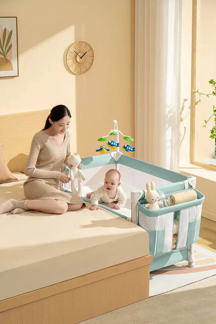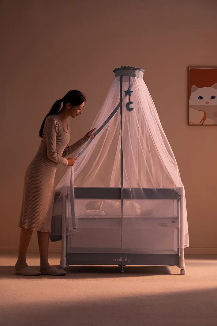 相較于市面上其他嬰兒床,它真正實現了1秒展開1秒收合、零工具安裝,解決了普通嬰兒床安裝步驟多、操作難的痛點;床頭插孔專利顛覆了傳統設計,解決了嬰兒床搖鈴、蚊帳、置物欄安裝不穩定的痛點。同時,全身布套可拆洗也屬于業內領先的獨創型設計。此外,P106嬰兒床功能齊全,具有搖床、游戲床、睡床等多種模式,折疊小巧方便攜帶。
