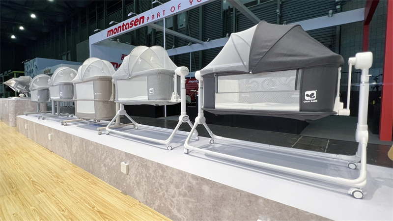 產品秀的背后,是酷豆丁對產品研發的深厚積淀和不斷創新。本屆展會上,酷豆丁展示了多款精心研發的嬰童用品,包括嬰兒床、嬰兒車、兒童餐椅、嬰兒電動搖床、搖椅等。其中全新研發的智能袋鼠嬰兒床和小鹿智能搖籃更是驚艷亮相,憑借多功能的設計、高品質的材料以及多配置的使用體驗,吸引了眾多參展人員的目光。面對絡繹不絕的參觀者,酷豆丁的工作人員以飽滿的熱情和專業的態度,耐心細致地講解產品特色與優勢,共同探討未來的合作與發展機遇。