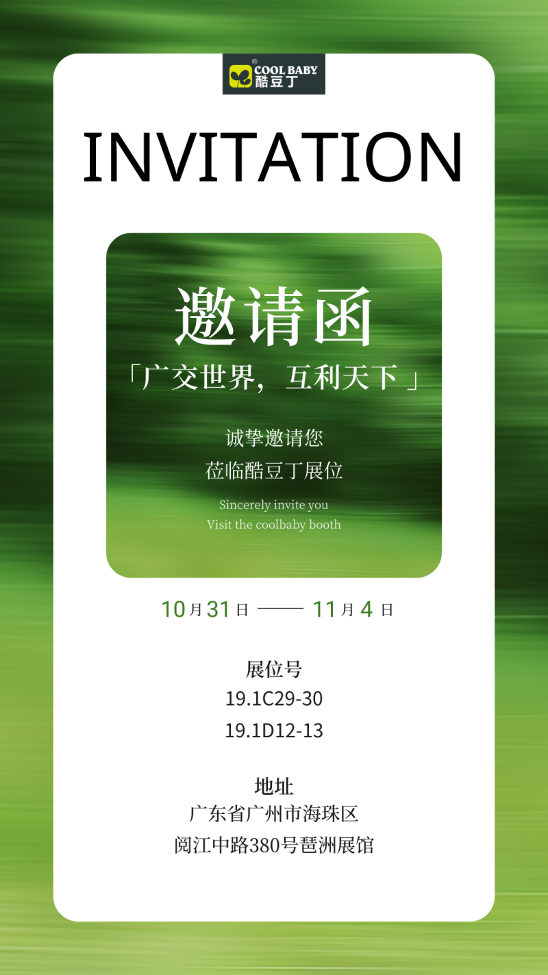 在這充滿機(jī)遇與挑戰(zhàn)的時(shí)代,安徽酷豆丁科技發(fā)展股份有限公司將再度揚(yáng)帆起航,參與第136屆中國(guó)進(jìn)出口商品交易會(huì)(廣交會(huì))。這已是酷豆丁連續(xù)第17年登上廣交會(huì)舞臺(tái),本屆展會(huì)酷豆丁將攜一系列智能創(chuàng)新產(chǎn)品登場(chǎng),旨在通過(guò)這一國(guó)際性的交流平臺(tái),展示我們?cè)谥悄軏胪闷奉I(lǐng)域的最新成果。我們誠(chéng)摯地邀請(qǐng)您于2024年10月31日至11月4日期間,親臨酷豆丁展位【19.1C29-30, 19.1D12-13】。期待在展會(huì)上與您相見,共享智慧碰撞的火花,共創(chuàng)母嬰產(chǎn)品的美好明天!