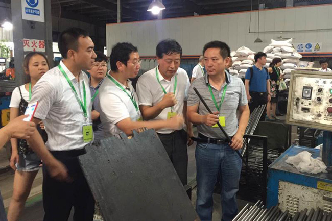 酷豆丁接待人員向嘉賓們介紹產(chǎn)品工藝流程