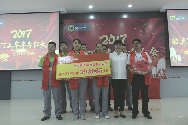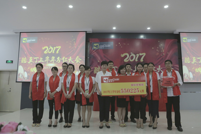 酷貝貝兒童用品有限公司領(lǐng)取分紅現(xiàn)金并與酷豆丁董事長合影留念