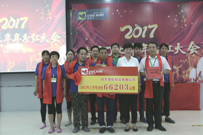 潤豐塑膠有限公司領(lǐng)取分紅現(xiàn)金并與酷豆丁董事長合影留念