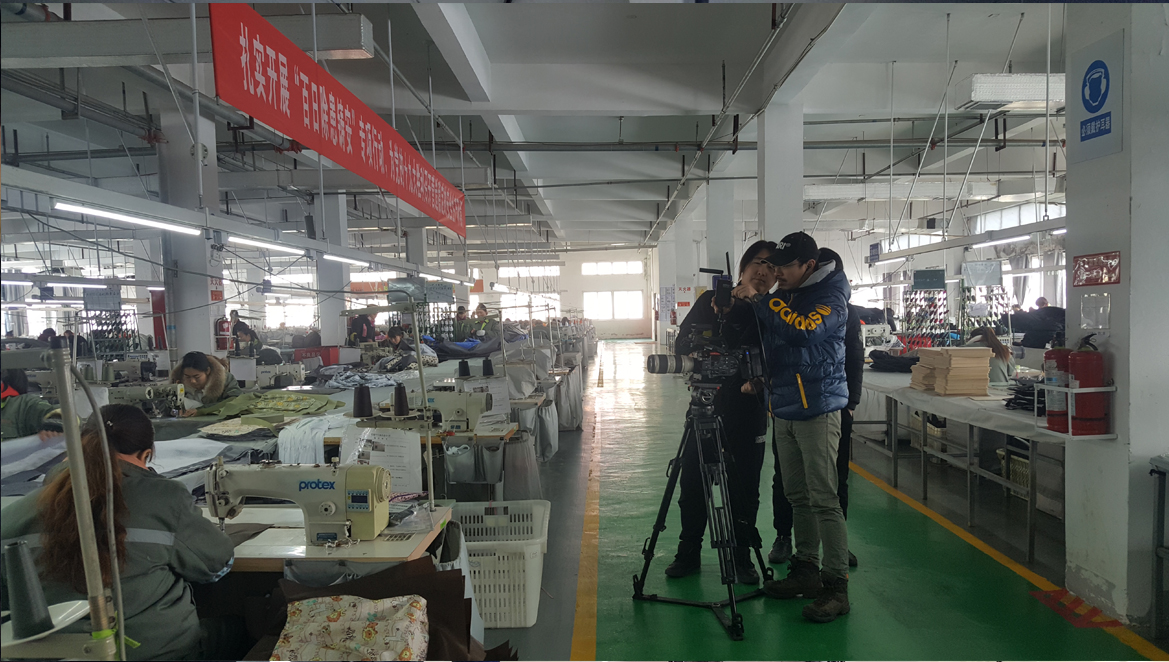 拍攝組在公司新產(chǎn)品展示廳實(shí)地取景