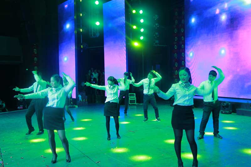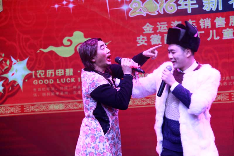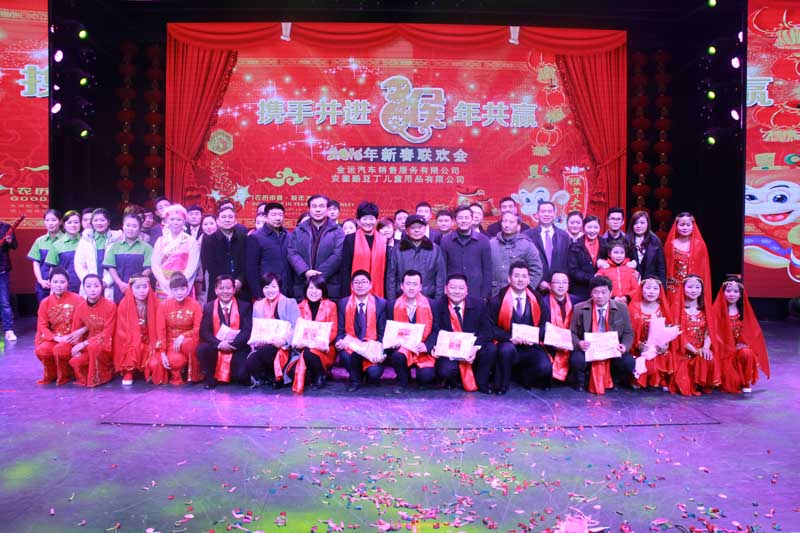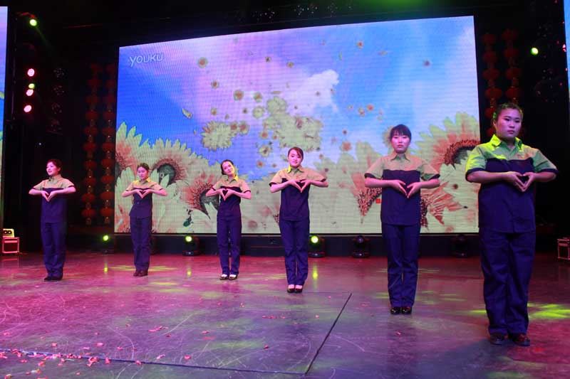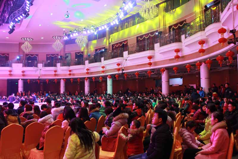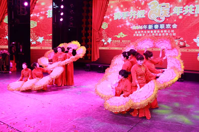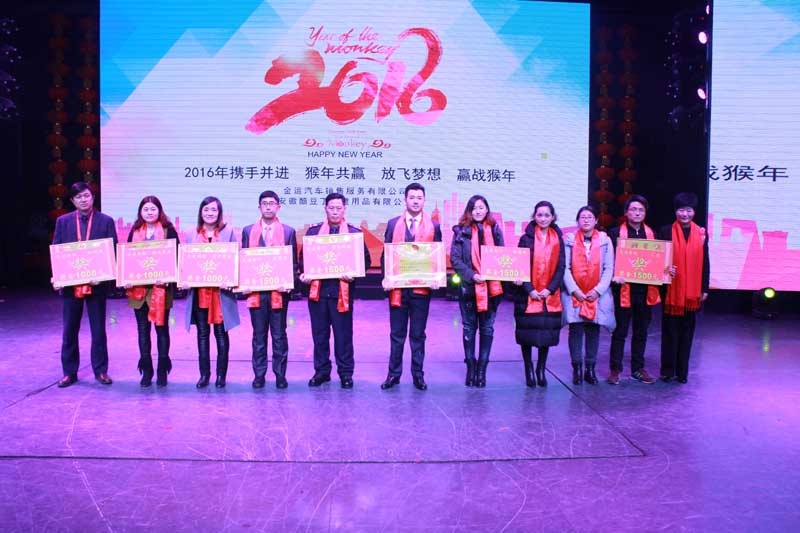 大會舉行了2015年身股分紅儀式,現場分的現金230萬元。分別表彰了33名先進工作者,12名質量標兵、20名技術能手、5名優秀干部、7個先進單位。公司領導分別為獲獎者頒發了獎牌和獎金。聯歡會上,領導和員工們同臺表演了舞蹈、獨唱、詩朗誦、小品、走秀、手語舞蹈等豐富多彩的文藝節目。在會場熱烈的氣氛中,公司還特別開展了誘人的抽獎活動。最后,區領導和公司領導上臺與所有演員合影留念。