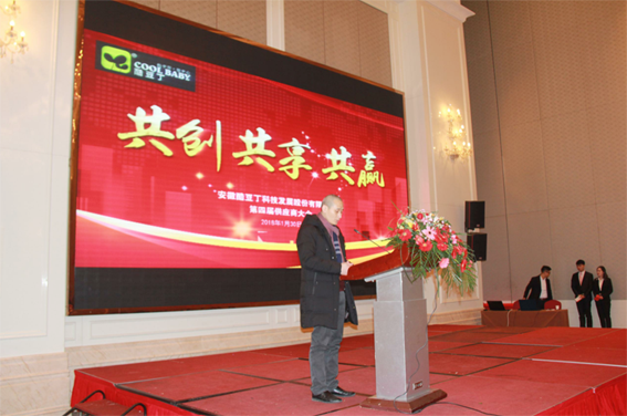 張迎年董事長在會上介紹了酷豆丁公司2017年的生產經營情況和2018年公司的發展方向,并從質量、交期、價格、服務等四個方面做了全面的解釋和說明,也代表我們酷豆丁科技發展股份有限公司向各位老板提出了合理要求。目的是希望進一步加強合作,實現雙贏的共同發展。