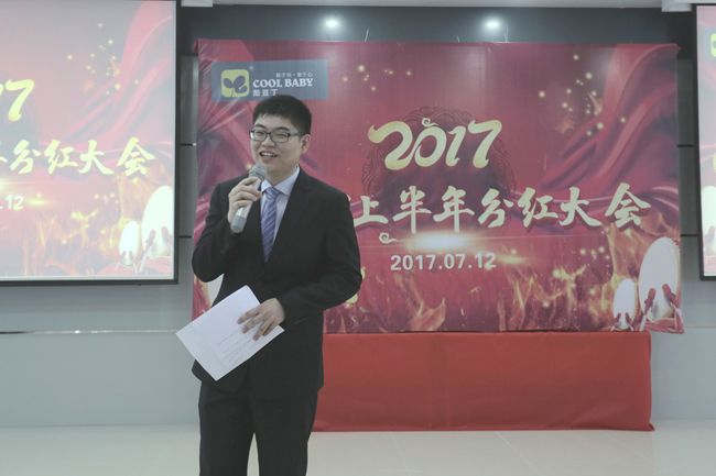 2017年7月12日下午,安徽酷豆丁科技發展股份有限公司分紅大會隆重召開。期間,慧聰國際董事局主席郭凡生郭總,北京高界律師事務所合伙人、酷豆丁公司法律顧問馮仲實律師,信永中和會計師事務所合伙人、酷豆丁公司財務顧問毛仁裕先生,慧聰書院資深指導老師孫云領及項目團隊和來自全國各地的20多位企業家共同參與本次分紅的現場,董事長張迎年及公司二百余名骨干代表參加了本次會議。