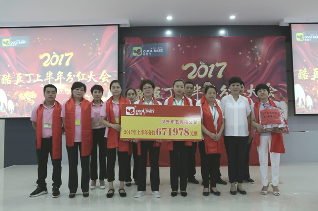 貝升布藝有限公司領取分紅現金并與酷豆丁董事長合影留念