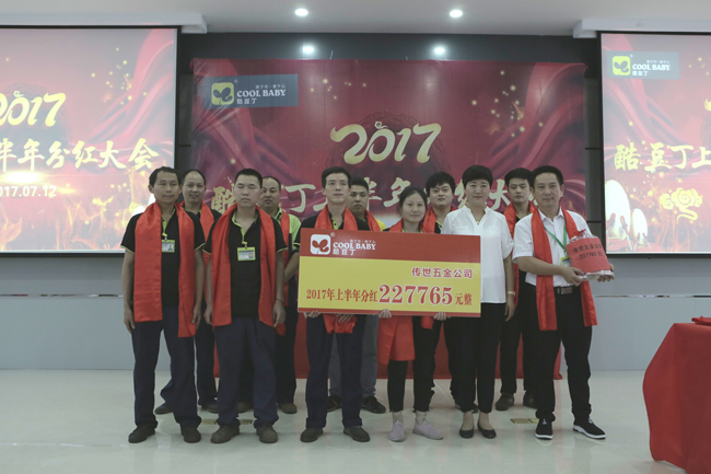 傳世五金有限公司領取分紅現金并與酷豆丁董事長合影留念