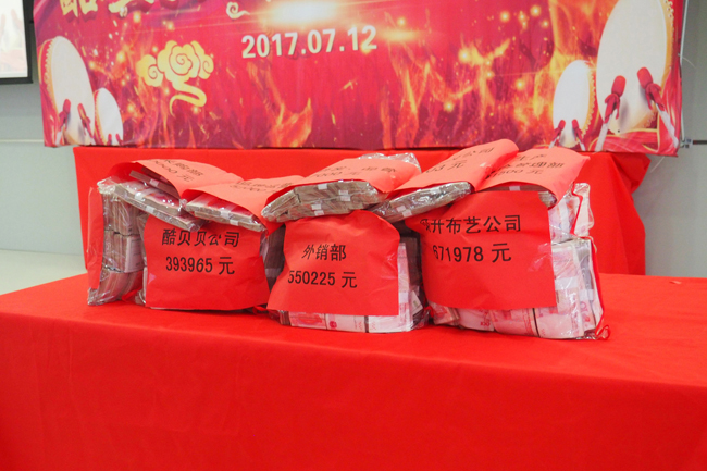 展示現金時,現場參會人員爆發出熱烈掌聲。這掌聲是酷豆丁員工對“耕者有其田,商者有其股”制度的贊賞,這掌聲是酷豆丁人對“股改天下”發展模式的尊崇,這掌聲是對酷豆丁董事長寬大胸懷的敬仰和由忠的佩服。2017年酷豆丁人通過這半年的努力,為自己獲取了更多分紅實惠,同時也提高企業整體效益。