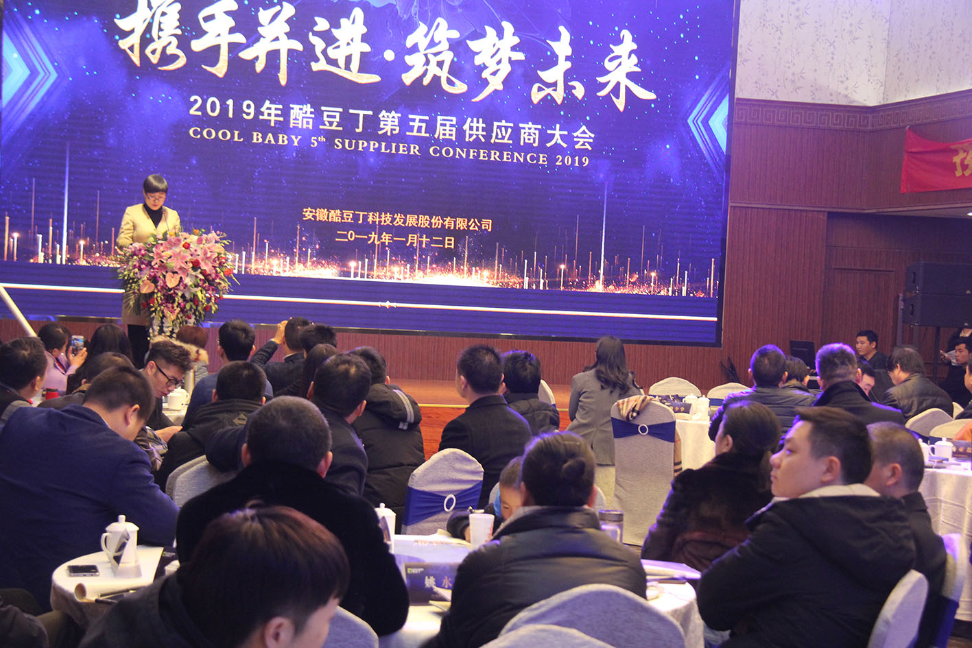 2019年1月12日上午,安徽酷豆丁科技發展股份有限公司以“攜手并進 筑夢未來”為主題的第五屆供應商大會隆重召開。會議對2018年供應商合作情況進行了總結和表彰。同時會上透露為實現的目標,打造精品童車、童床項目,作為供應商質量管理年,2019年,進一步完善供應商管理體系,持續合作共贏。