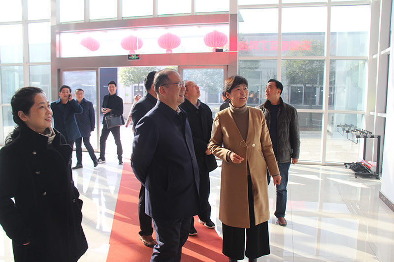 酷豆丁董事長張迎年帶領副市長及其他領導一行參觀生產車間