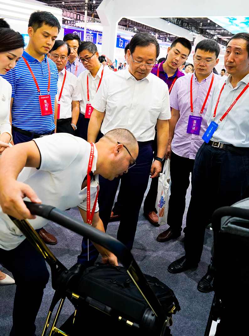 頒獎大會結束后,安徽省經濟和信息化廳黨組書記、廳長牛弩韜一行蒞臨安徽酷豆丁展臺參觀考察。安徽酷豆丁參會代表熱情接待來訪領導,牛廳長一行在公司工作人員的詳細介紹下對安徽酷豆丁的發展狀況有了一定的了解,并對安徽酷豆丁本次參展的產品產生濃厚的興趣。現場工作人員也為牛廳長一行展示我們酷豆丁品牌的相關產品。