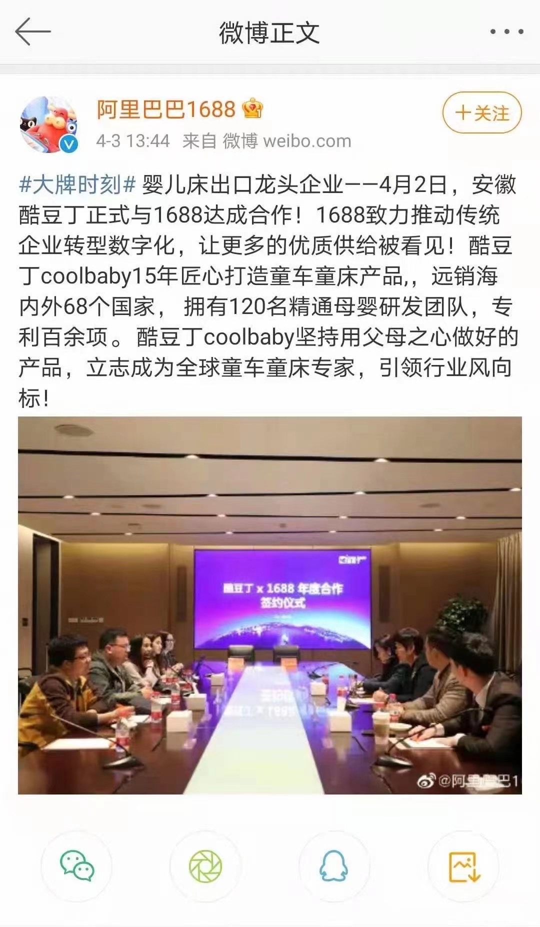 2021年4月2日,作為國內嬰兒床出口龍頭企業的安徽酷豆丁科技發展股份有限公司(以下簡稱:酷豆丁)與1688正式達成合作!