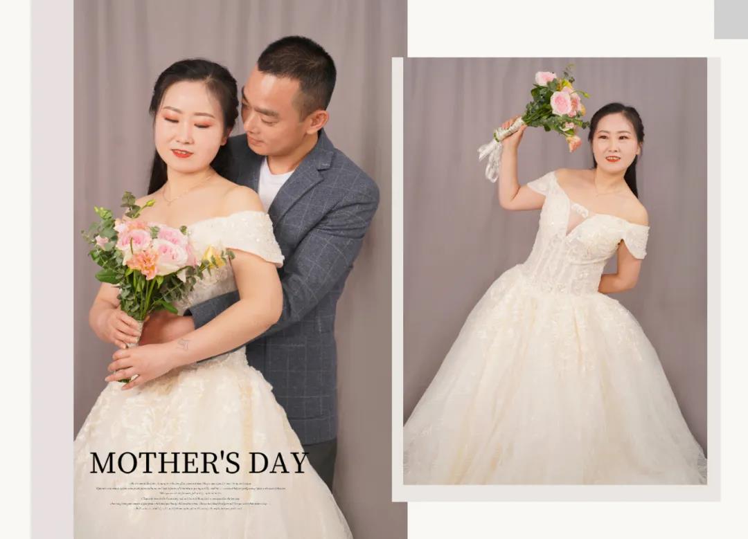 酷豆丁在2021年母親節來臨之時,特邀公司職工,送去特殊的禮物,在鏡頭下記錄“用一身婚紗·重溫幸?!?/span>時刻。為幸福助力,為愛點贊。