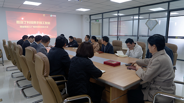 3月18日,酷豆丁科技攜手精工能智工廠規劃項目啟動大會在科技樓會議室召開。精工智能總經理朱偉、項目總監王偉喜、專家趙長江、劉旭,酷豆丁董事長張迎年、副總韓兵等相關負責人出席會議,總經辦主任張德會主持會議。