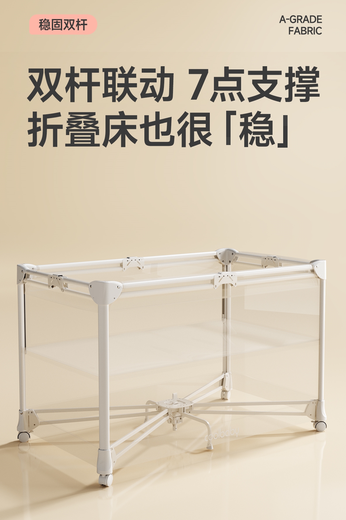 酷豆丁嬰兒床擁有一鍵收折技術,一提即收,一按即開,靜音萬向輪,隨行隨動,且鋁合金材質相對較輕,在搬運和移動時更加輕便好攜帶,輕輕松松就可以帶出門,解放爸媽雙手,守護寶寶童年。