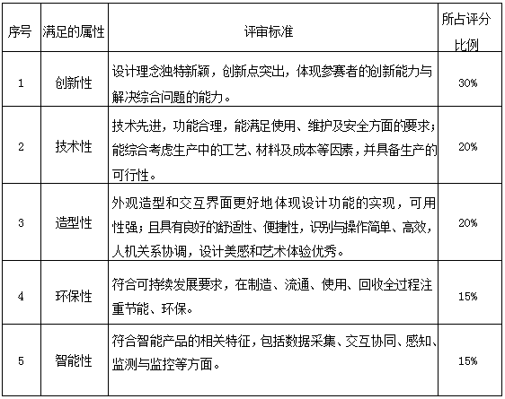 設計圖紙 參賽者需提交 1 張設計圖紙用于評審。設計圖紙必須采用統一模板,在酷豆丁杯分項賽QQ群下載。設置為JPG格式圖片,A1幅面594×841mm,分辨率150dpi。 圖紙內容根據設計方向展示必要的三維效果圖、設計主題、色彩搭配、結構細節、外觀尺寸圖、交互界面等,建議配有必要的文字說明,圖紙版面不得出現參賽者姓名、單位或與參賽者相關的其它信息,否則視為違規并取消參賽資格。 圖紙下方指定位置須填寫作品名稱和作品編號,作品編號形式為“聯系人手機號-作品序號”,如聯系人手機號為13888888888 的第一件投稿作品編號為 13888888888-1;第二件投稿作品編號為13888888888-2,以此類推。 征集鏈接信息填寫 征集投稿系統內含有作品相關信息填寫,字段包括但不限于:作品名稱、作品編號、作者姓名/團隊成員姓名(不超過 5 人)、作者/團隊單位、聯系人、手機、郵箱、通訊地址、指導老師(僅針對在校生或作品為在校期間完成的)等。四、評審專家及評審標準 (一)評審專家 在省賽組委會的指導、監督下,邀請設計界、產業界專家組成評審委員會,按照評審規則對參賽作品綜合評審,提出最終獲獎名單。 (二)評審標準五、獎項設置及時間安排 獎項設置 一等獎2名,獎金8000元/名+獲獎證書; 二等獎4名,獎金4000元/名+獲獎證書; 三等獎10名,獎金1000元/名+獲獎證書; 優秀獎20名,獎金500元/名+獲獎證書; 優秀指導教師獎若干名,獎金1000元/名+獲獎證書。 上述獎金為稅前獎金,所有獲獎者按照省賽組委會要求頒發獲獎證書,獲獎者均可獲得安徽酷豆丁科技發展股份有限公司實習或就業機會。 時間安排 2024年5月10日—8月5日,征集參賽作品; 2024年8月中旬,分項賽評審; 2024年8月底,公布獲獎名單。六、知識產權及有關說明 1.參賽作品須是參賽者具有獨立知識產權的原創作品。侵權或抄襲作品一經發現,組委會將取消其參賽資格,收回其所獲獎項,有關法律責任由參賽者全部承擔。 2.參賽者應避免其作品喪失新穎性,并承擔保護其作品知識產權的責任。大賽組委會及大賽相關工作人員在評審期間有為參賽作品保密的義務。 3.獲獎作品知識產權歸安徽酷豆丁科技發展股份有限公司所有,獲獎者擁有獲獎作品宣傳、出版發行、展示等權利。 4.投稿人須同意遵守省賽組委會和本分項賽的相關規定,自愿參加賽事活動。自行承諾填寫的內容真實、準確、合法、有效,因信息弄虛作假而引起的一切糾紛,由投稿人負責。 5.主辦單位對本次大賽保留最終的解釋權。 七、聯系方式
