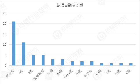 從融資輪次看,今年上半年天使輪以21起的數量占比36%,位居融資輪次數量第一名,A輪以11起的數額排名第二。同時,在融資數量與金額縮水的情況下,資本對早期項目的投資態度愈發謹慎。