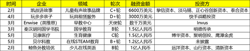 以下,我們具體來看早幼教、母嬰產品與服務、孕產醫療健康等板塊的投融資變化。