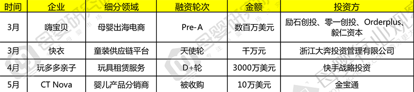 另外,從今年上半年獲得融資的4起跟母嬰零售相關的投融資事件看,上半年資本對主流賽道持續觀望的態度,并不急于出手。其中,2月份,專注于童裝供應鏈的產業互聯網平臺快衣,完成千萬元天使輪融資,投資方為浙江大奔投資管理有限公司,其業務圍繞湖州織里鎮展開,已經擁有360多家加工廠,合作品牌商超200家,2019年平臺流水8000萬。此外,今年4月,面向兒童提供中高端玩具租賃服務的“玩多多”親子完成3000萬美元D+輪融資,投資方為快手戰投。