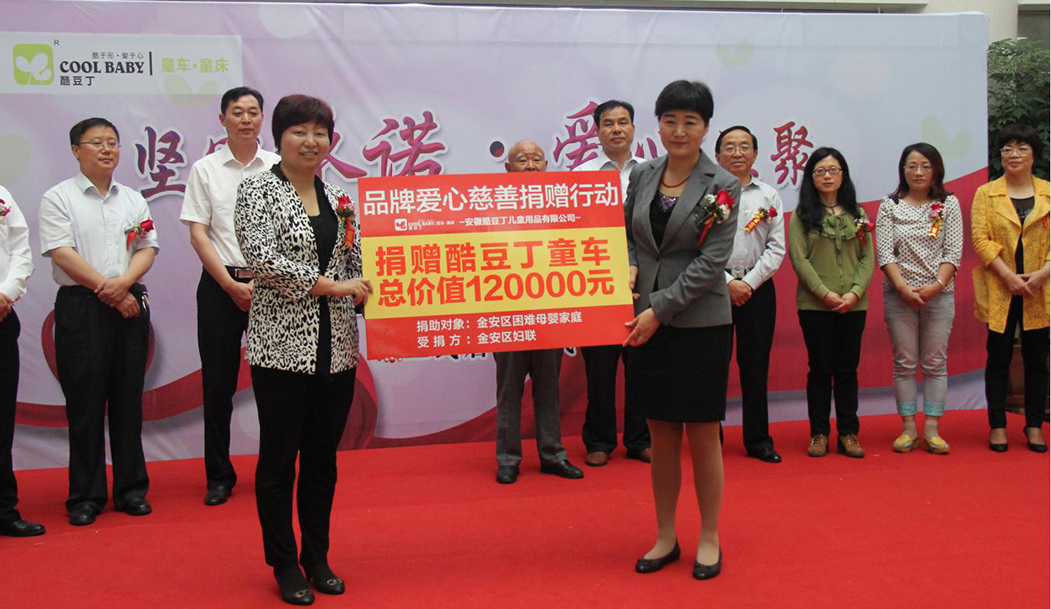 本次捐贈(zèng)的15多萬嬰童用品,是酷豆丁公司從2014年開始起動(dòng)的“愛心慈善捐贈(zèng)活動(dòng)”的第三年向慈善協(xié)會(huì)捐贈(zèng)的活動(dòng)??岫苟?/span>張迎年董事長(zhǎng)向金安區(qū)婦聯(lián)捐贈(zèng)122臺(tái)童車童床總價(jià)值12萬元,向金安區(qū)婦幼保健院捐贈(zèng)了40臺(tái)童床價(jià)值3萬,來自全區(qū)60名困難母嬰家庭和婦幼保健院的醫(yī)務(wù)工作人員接受了捐贈(zèng)。