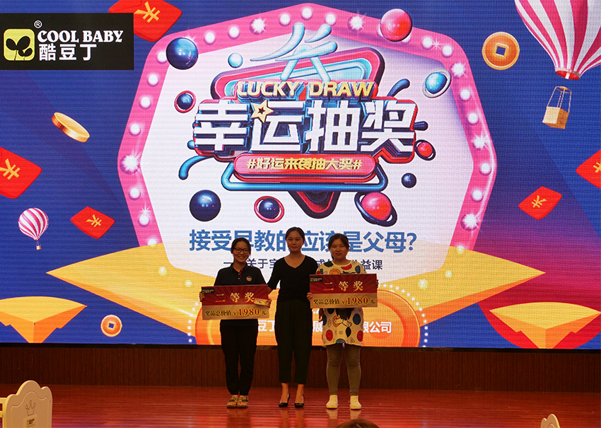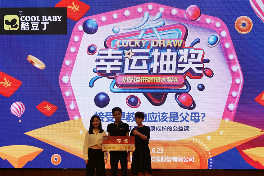 除了聆聽專業(yè)老師的授課,了解有關(guān)早教、育嬰、教育、家庭、職場相關(guān)知識點(diǎn)之外,主辦方還在簽到處準(zhǔn)備了隨手禮供參與家長們免費(fèi)領(lǐng)取,并設(shè)置了獎品豐富的現(xiàn)場抽獎環(huán)節(jié)。共有新一代環(huán)保床、嬰幼兒多功能活動中心套裝、便攜式游戲床在內(nèi)的豪華大獎頒發(fā)給了現(xiàn)場的幸運(yùn)觀眾。