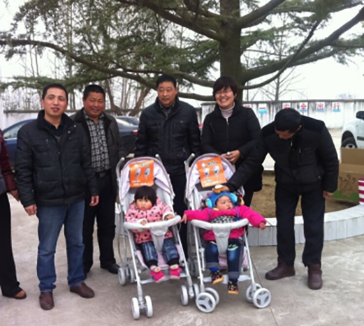 酷豆丁工會主席張德會代表公司為金安區先生店鄉陳大莊村留守兒童捐贈2000元現金,為10名準媽媽送去價值3000元的童車。