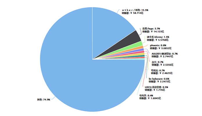 導讀:魔鏡市場情報最新數據顯示:2019年1~10月份,天貓+淘寶的玩具銷售額規模達378億,其中,線上玩具品牌TOP10,市場規模加起來占比不足四分之一,由此可見,中國線上玩具市場品...