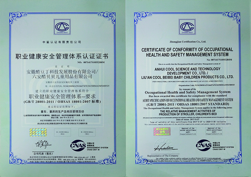 職業(yè)健康安全管理體系認證證書