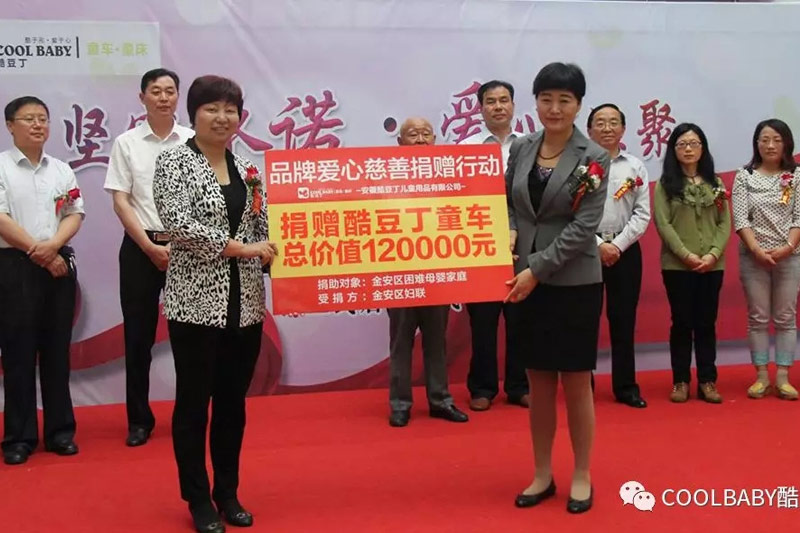 2014年起,張迎年決定每年委托六安市婦聯(lián)和金安區(qū)婦聯(lián)向全市困難母嬰家庭捐贈嬰幼兒用品以回報社會。公司在張迎年領導下積極反哺社會,向當?shù)?/span>金安區(qū)婦幼保健院、六安市兒童醫(yī)院、金安區(qū)慈善協(xié)會、六安市“十佳少年”、特困大學生、殘疾人協(xié)會、養(yǎng)老院等單位愛心捐贈。五年來,共委托市區(qū)婦聯(lián)向全市250個困難母嬰家庭捐贈了價值100多萬多元的童車、童床,真切地實現(xiàn)了她回報社會的諾言。