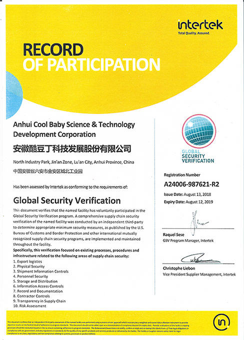 GSV美國反恐驗廠通過證書